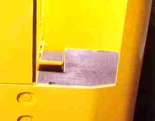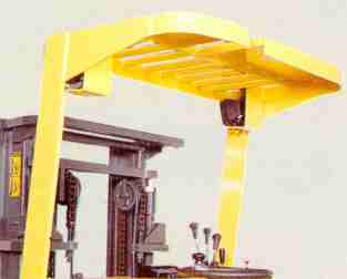 To protect operator from the cargo which is dropped from the upper. The dimensions of post supporting the top of head guard are increased to 19 (thickness) x 100 (width) mm to harden the intensity. |
